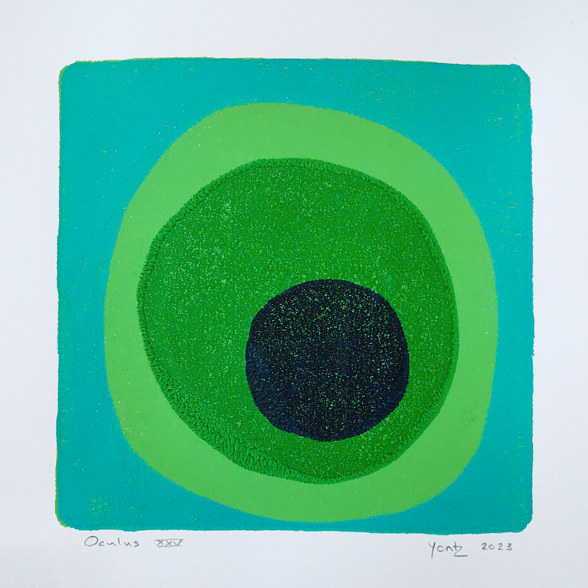 This is a selection from the Oculus Series (in chronological order). The series consists of over a hundred 15 x 15 cm monoprints made with acrylic paint on a gel press. Some of the prints have an added collage piece (from an original print) and/or marks made with acrylic pen. They are an exploration on shape and colour. This was a daily practise I started in 2022. If you would like to see all of them, check out my Instagram or Facebook page (see links on the top right).
